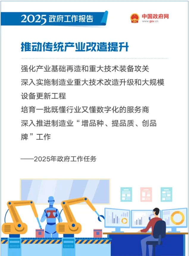 2025年《政府工作报告》着重提出“因地制宜发展新质生产力,加快建设现代化产业体系。”推动科技创新和产业创新融合发展,大力推进新型工业化,做大做强先进制造业,积极发展现代服务业,促进新动能积厚成势、传统动能焕新升级。